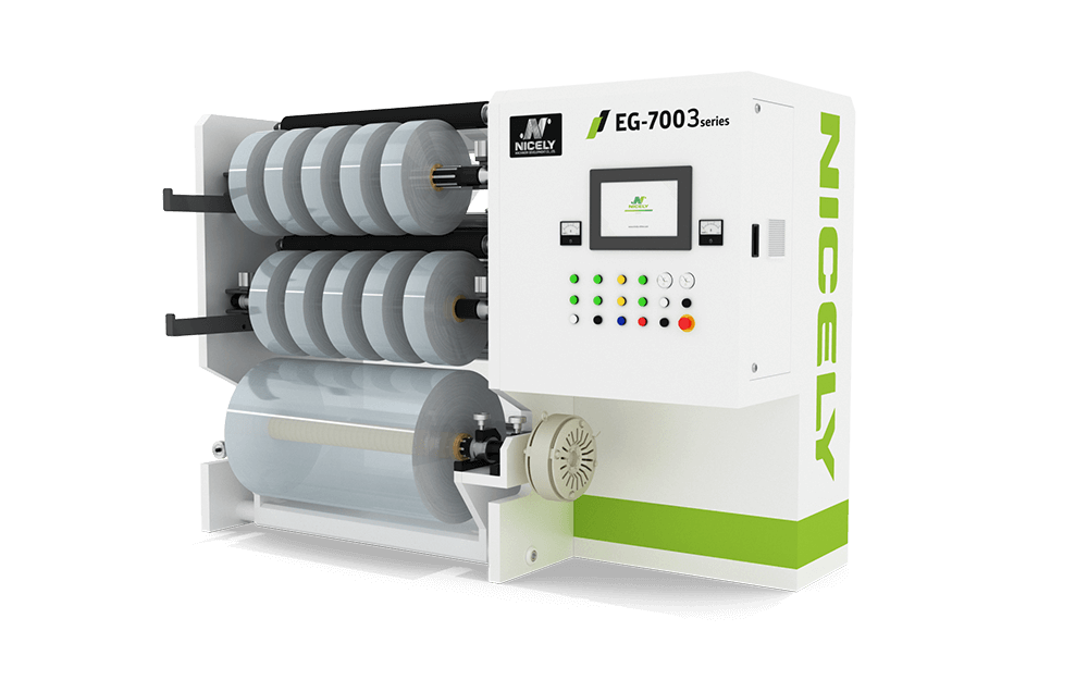 在執行外徑較大的原料時,EG-7003A 為相對經濟以及彈性的機種,除了軟性印刷包裝外,也常見用於光學膜與機能性薄膜。並可依無塵室需求客製粉塵移除裝置及隔離遮罩,大幅減少環境落塵可能造成材料污染。